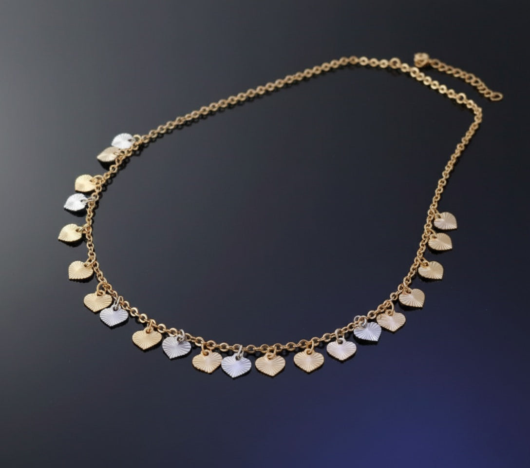 Bring effortless elegance to your everyday style with our Gold & Silver Heart Charm Chain Necklace — a delicate blend of premium shine and timeless charm. This lightweight necklace features alternating gold and silver heart pendants crafted with precision, making it a perfect match for every outfit, mood, and occasion.